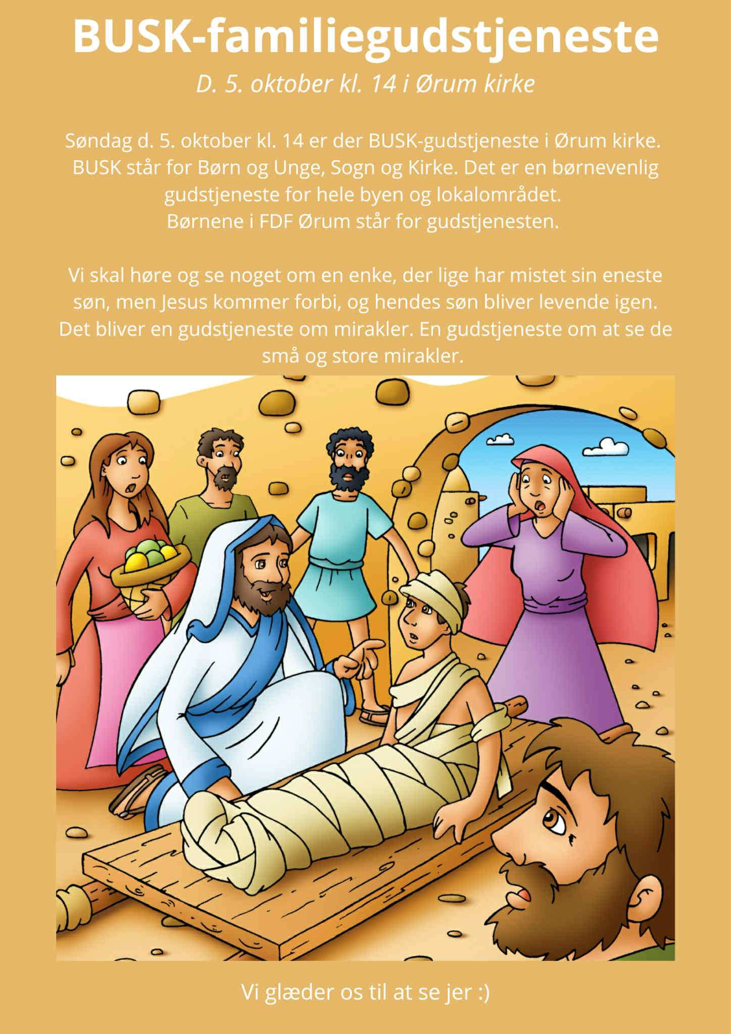 BUSK-gudstjeneste i Ørum kirke. BUSK står for Børn og Unge, Sogn og Kirke. Det er en børnevenlig gudstjeneste for hele byen og lokalområdet. Børnene i FDF Ørum står for gudstjenesten.