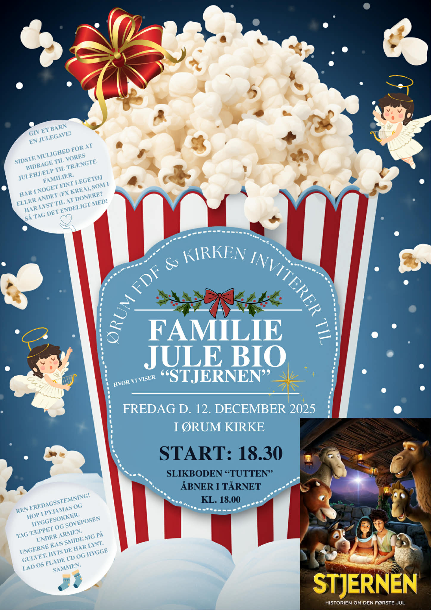 FDF Ørum og Ørum kirke inviterer til Familie Julebio, hvor vi viser filmen “Stjernen”.
